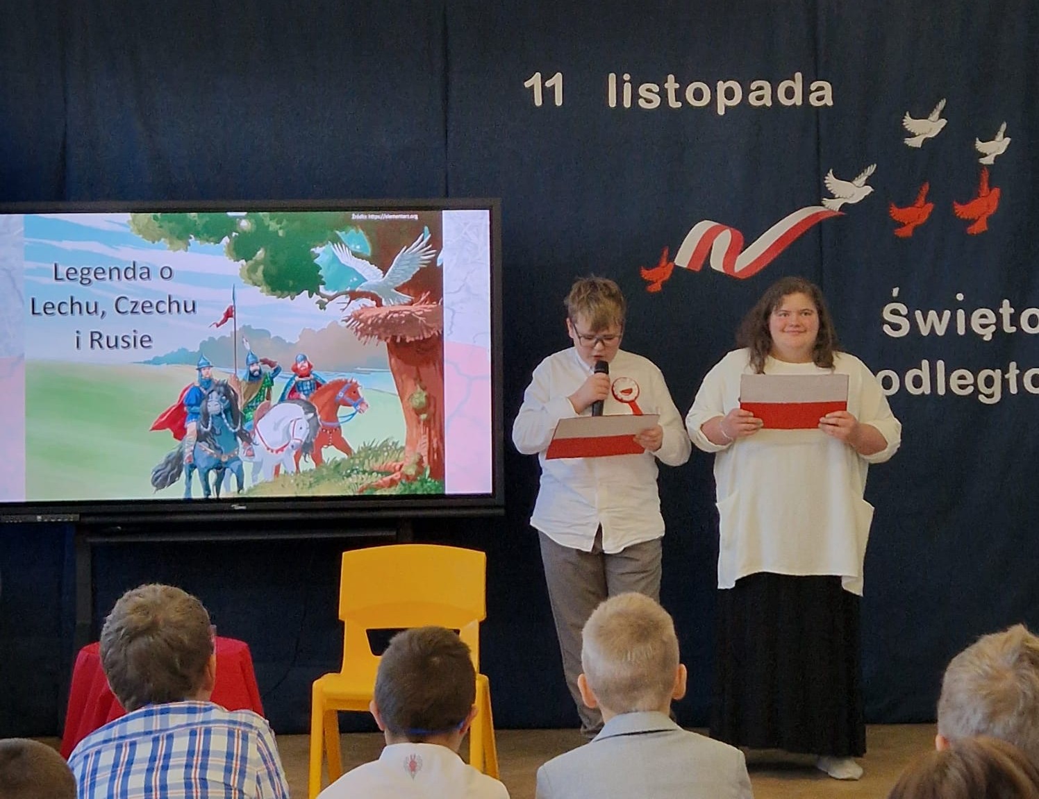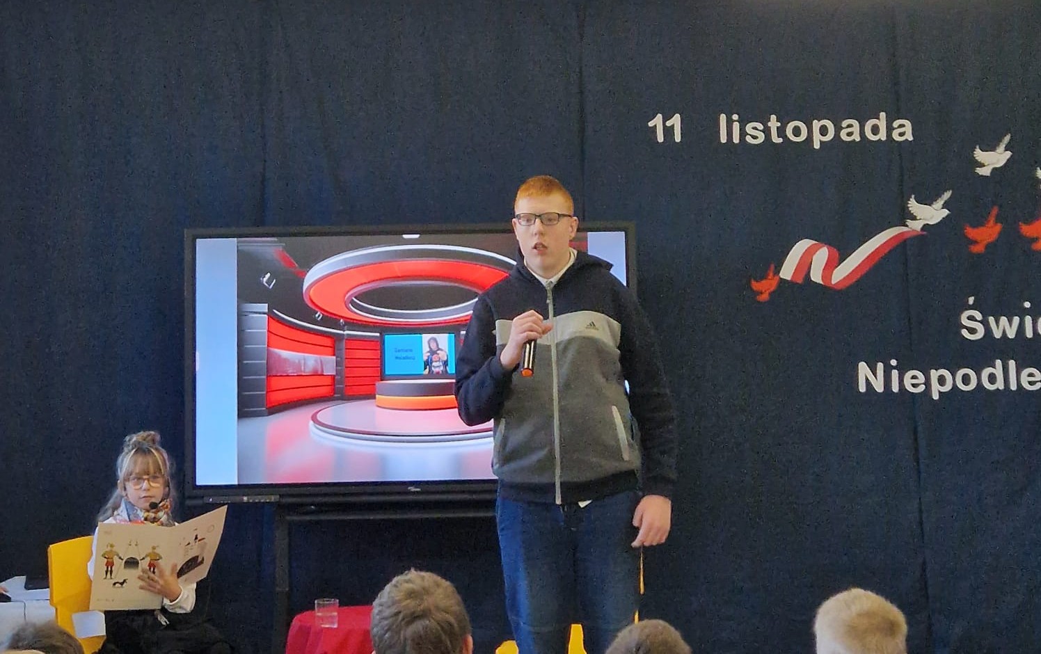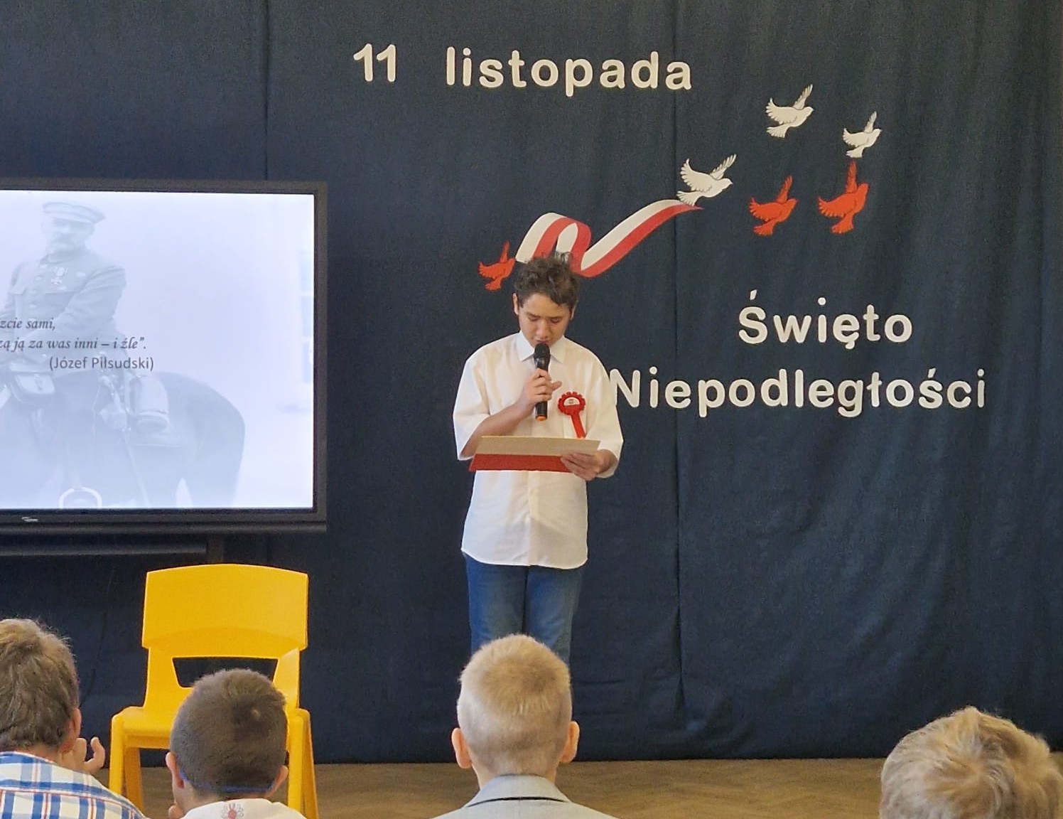 W dniu dzisiejszym w naszej szkole odbyła się uroczysta Akademia z okazji Święta Niepodległości. Była to dla nas niezwykła lekcja historii. Podczas wydarzenia uczniowie przedstawili montaż słowno-muzyczny, w którym przypomnieli najważniejsze fakty związane z walką o wolność. Przypomnieliśmy sobie, jak wiele trudnych momentów musiał przejść nasz kraj, abyśmy dzisiaj mogli cieszyć się wolną Polską. Historyczne projekcje filmowe oraz pieśni patriotyczne wprowadziły wszystkich w podniosły nastrój. Akademia miała na celu uczczenie bohaterów oraz podkreślenie wartości takich jak wolność, jedność i miłość do ojczyzny, a jej hasłem przewodnim było pytanie: "Czym dla mnie jest Ojczyzna?".