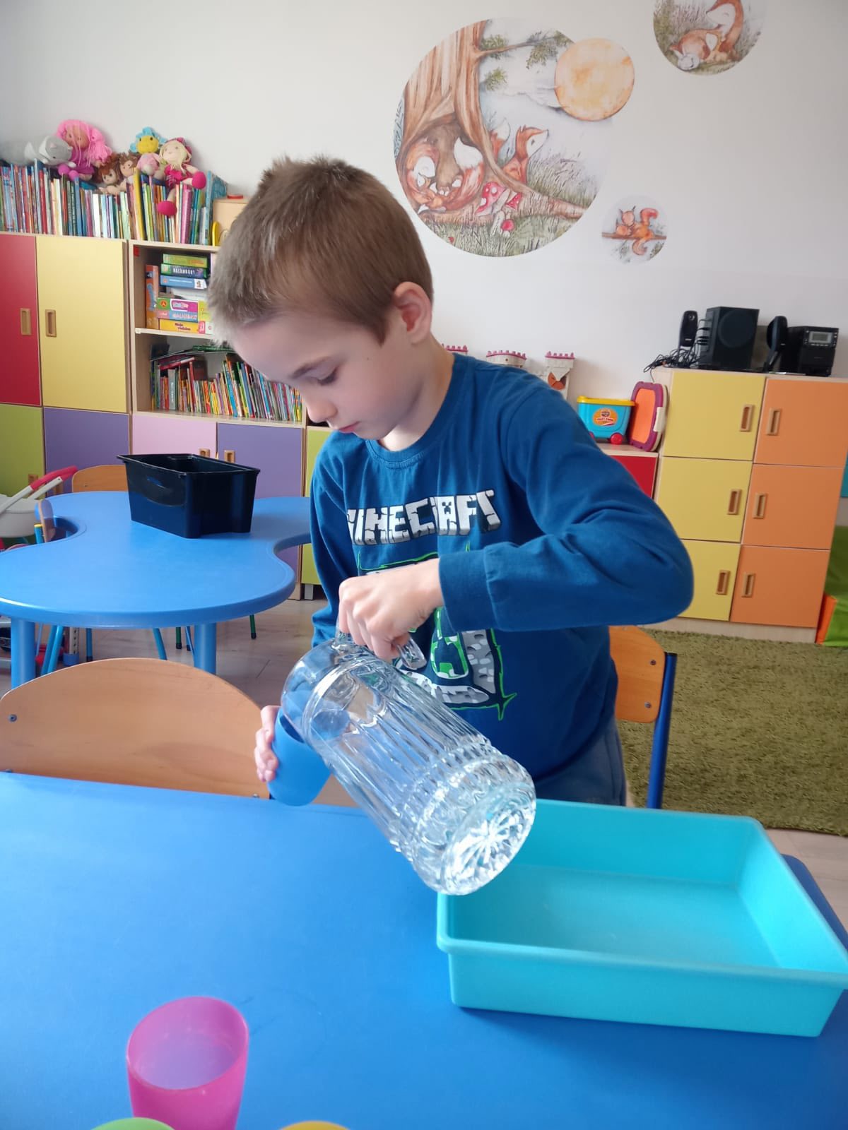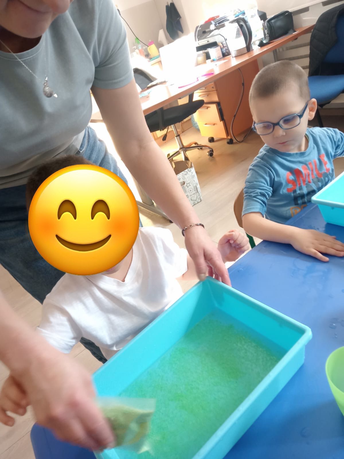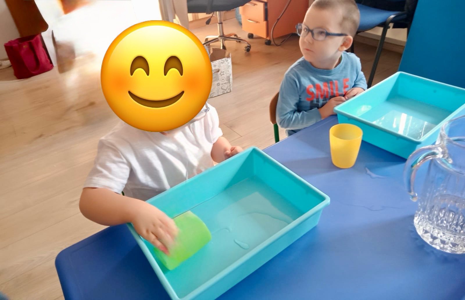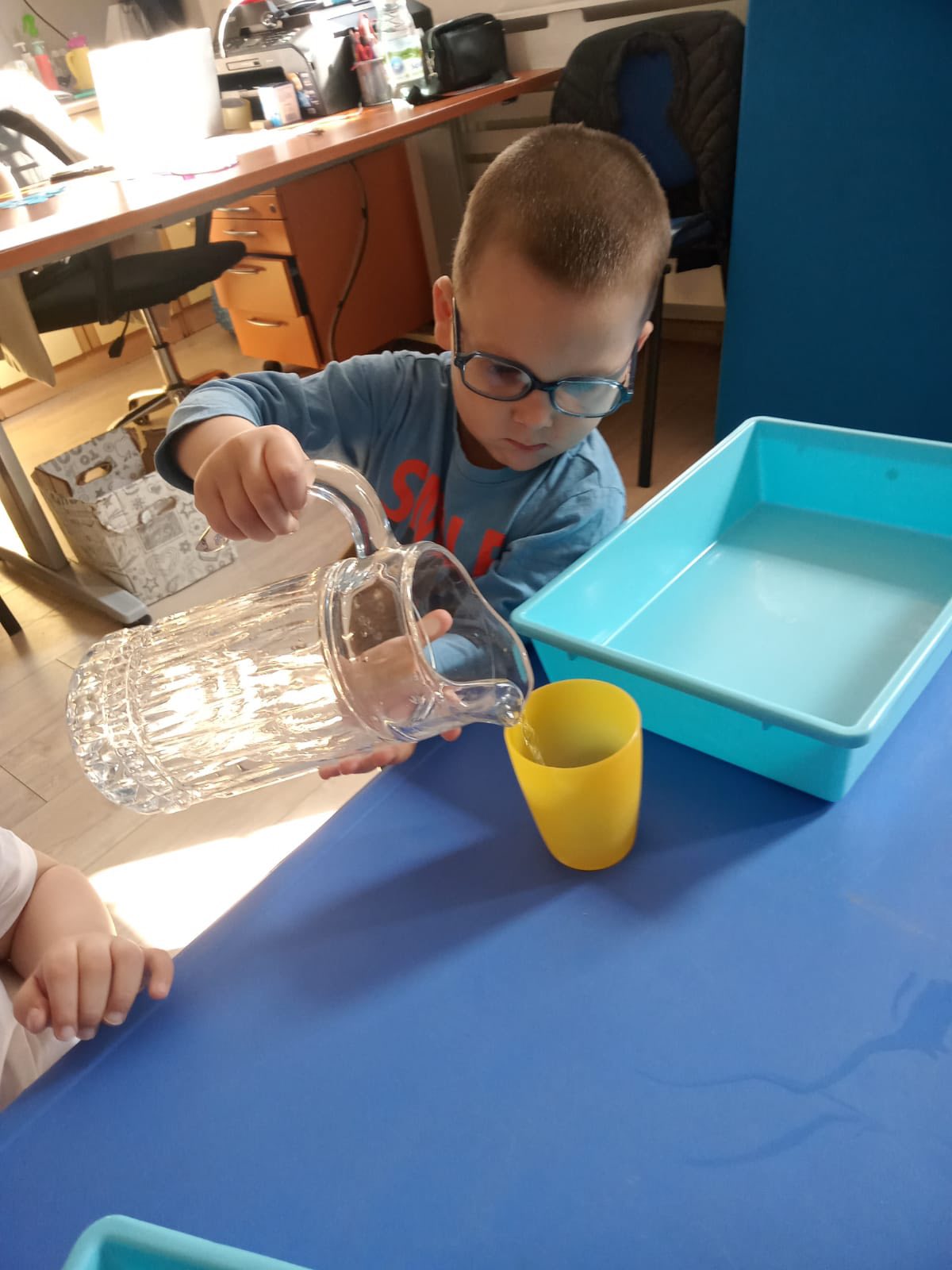 Dziś w naszym przedszkolu świętowaliśmy Światowy Dzień Wody, zamieniając sale w małe laboratoria! Dzieci odkrywały fascynujące stany skupienia, sprawdzając, jak lód zmienia się w ciecz, a gorąca woda w parę. Nie zabrakło też radosnych zabaw badawczych i eksperymentów, które nauczyły nas, jak wielkim skarbem jest każda kropla.