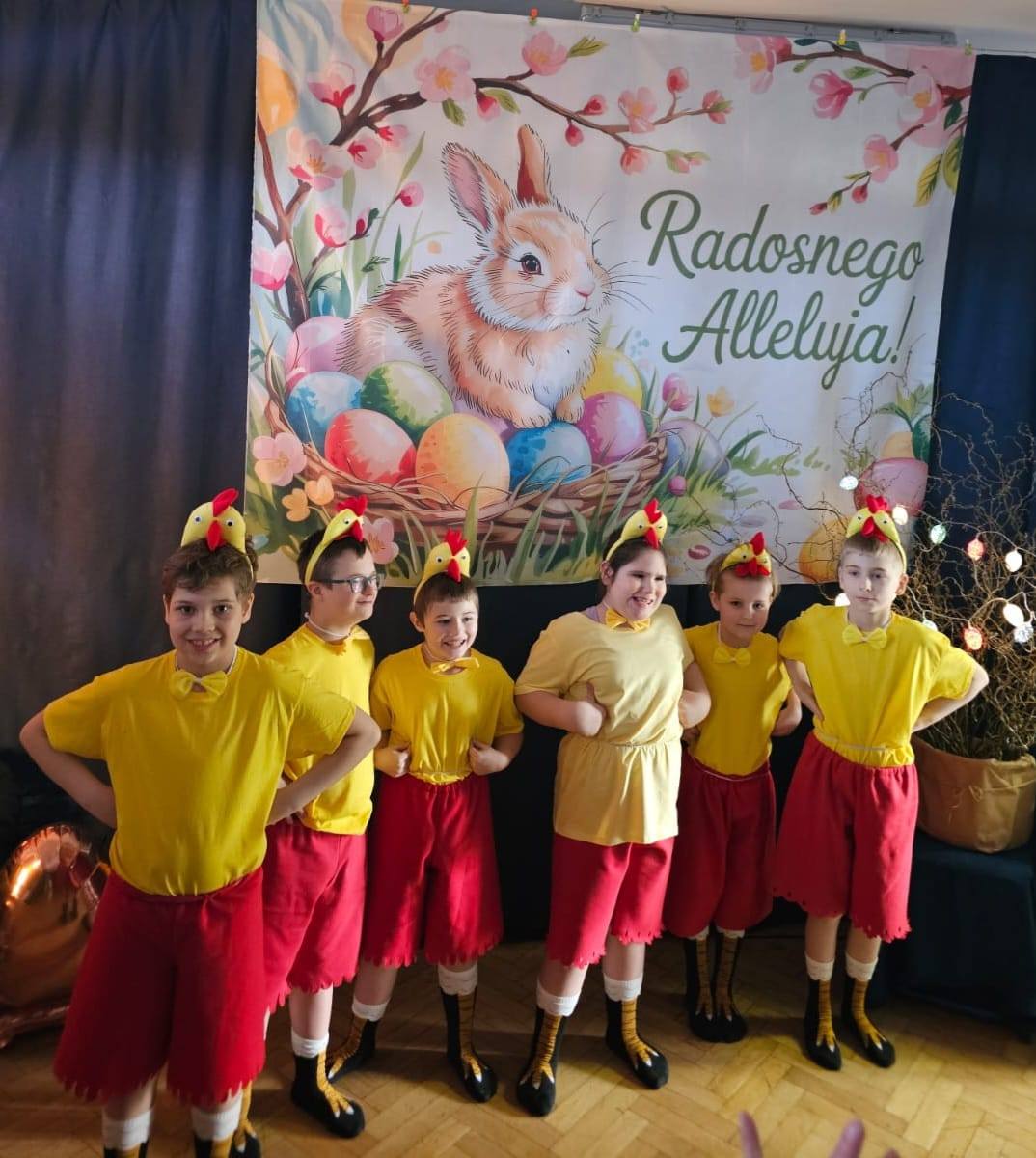 Za nami piękne przedstawienie wielkanocne. Dziękujemy wszystkim za obecność, zaangażowanie i wspólne przeżywanie tego wyjątkowego czasu. Występy były pełne radości, wzruszeń i wspaniałej atmosfery – ogromne brawa dla wszystkich uczestników! Z okazji Świąt Wielkanocnych życzymy Wam dużo zdrowia, spokoju, nadziei oraz radosnych chwil spędzonych w gronie najbliższych. Niech ten czas będzie pełen uśmiechu i wiosennej energii!
