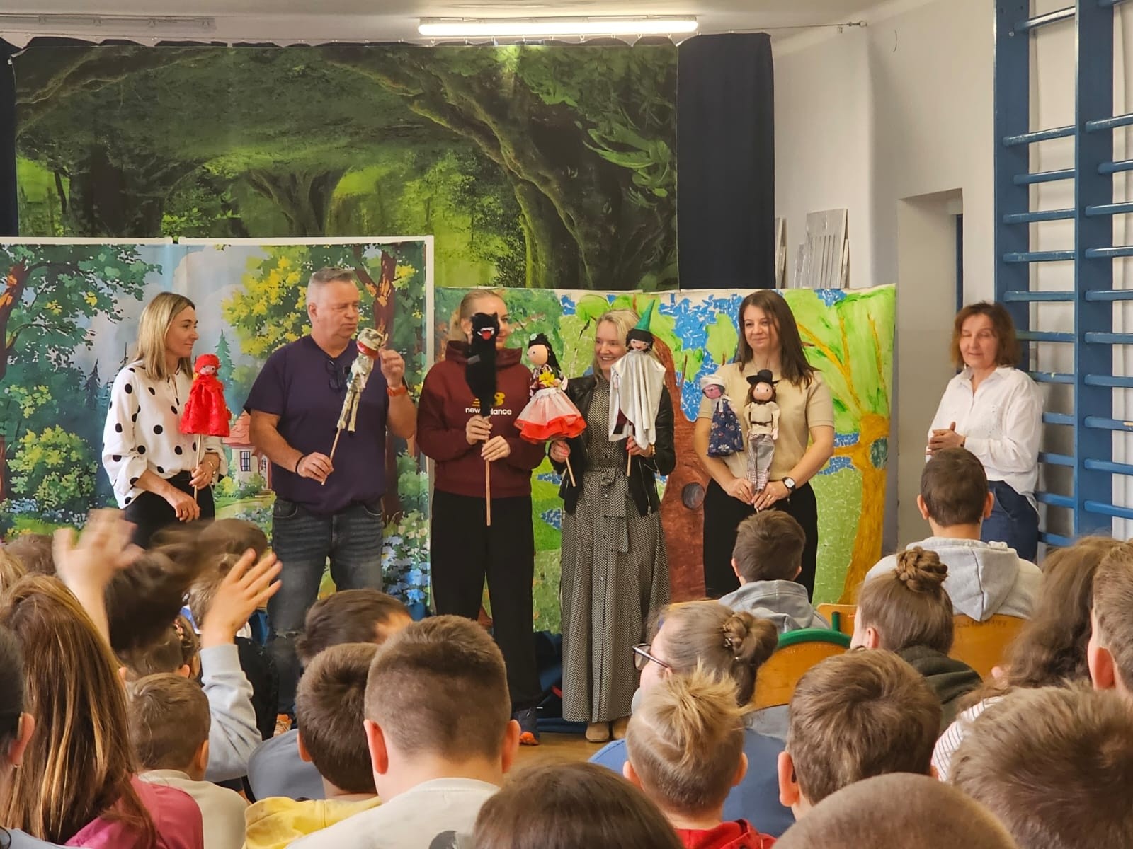 W naszej szkole odbyło się wyjątkowe przedstawienie kukiełkowe pt. „Czerwony Kapturek”, przygotowane i zaprezentowane przez nauczycieli. Spektakl wzbudził duże zainteresowanie wśród uczniów, którzy z radością śledzili losy bohaterów znanej bajki. Barwne kukiełki, ciekawa scenografia oraz humorystyczna gra nauczycieli sprawiły, że przedstawienie było pełne emocji i dobrej zabawy. Występ dostarczył dzieciom wielu radości i na długo pozostanie w ich pamięci.