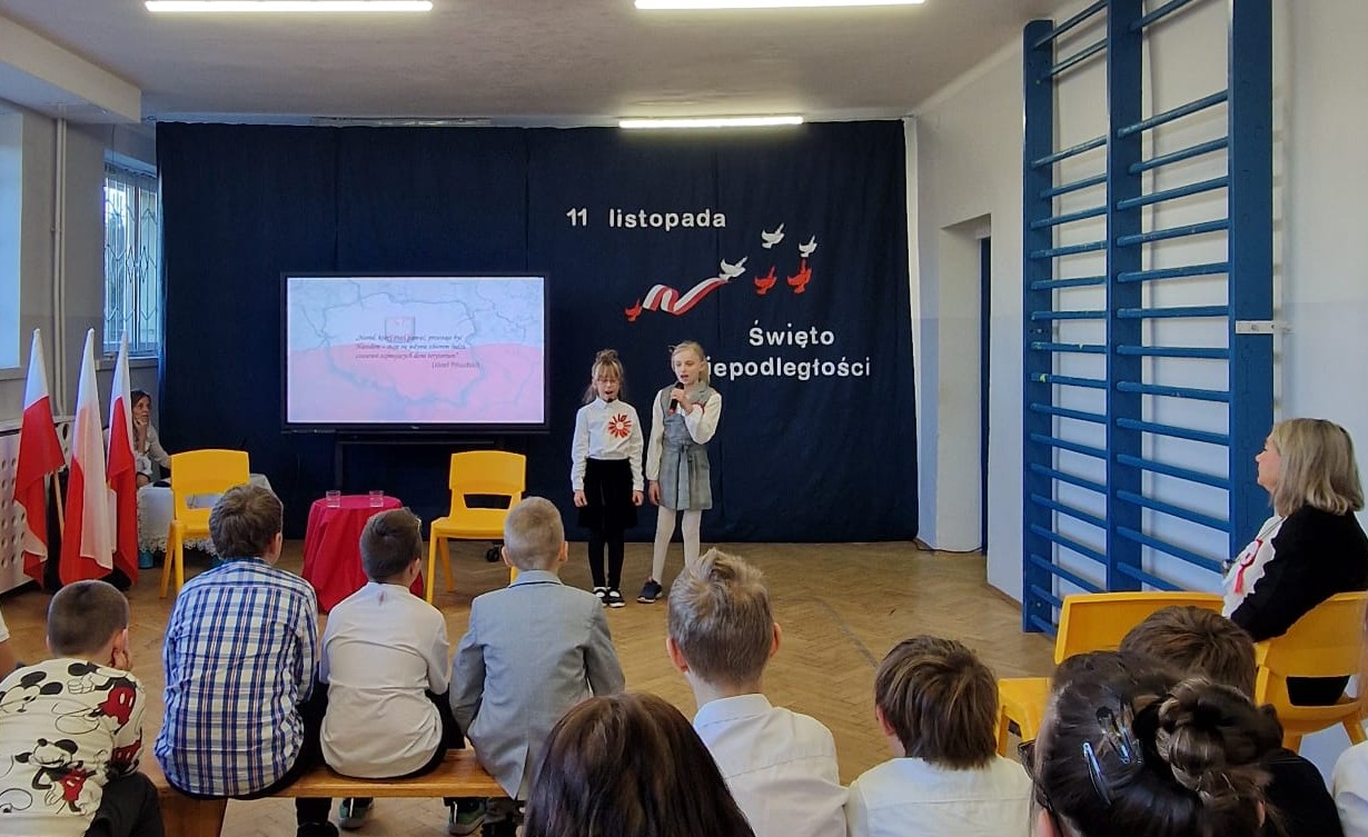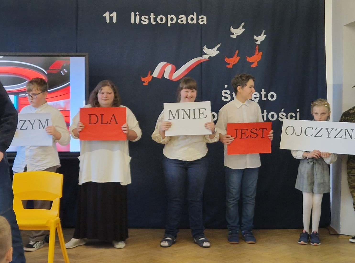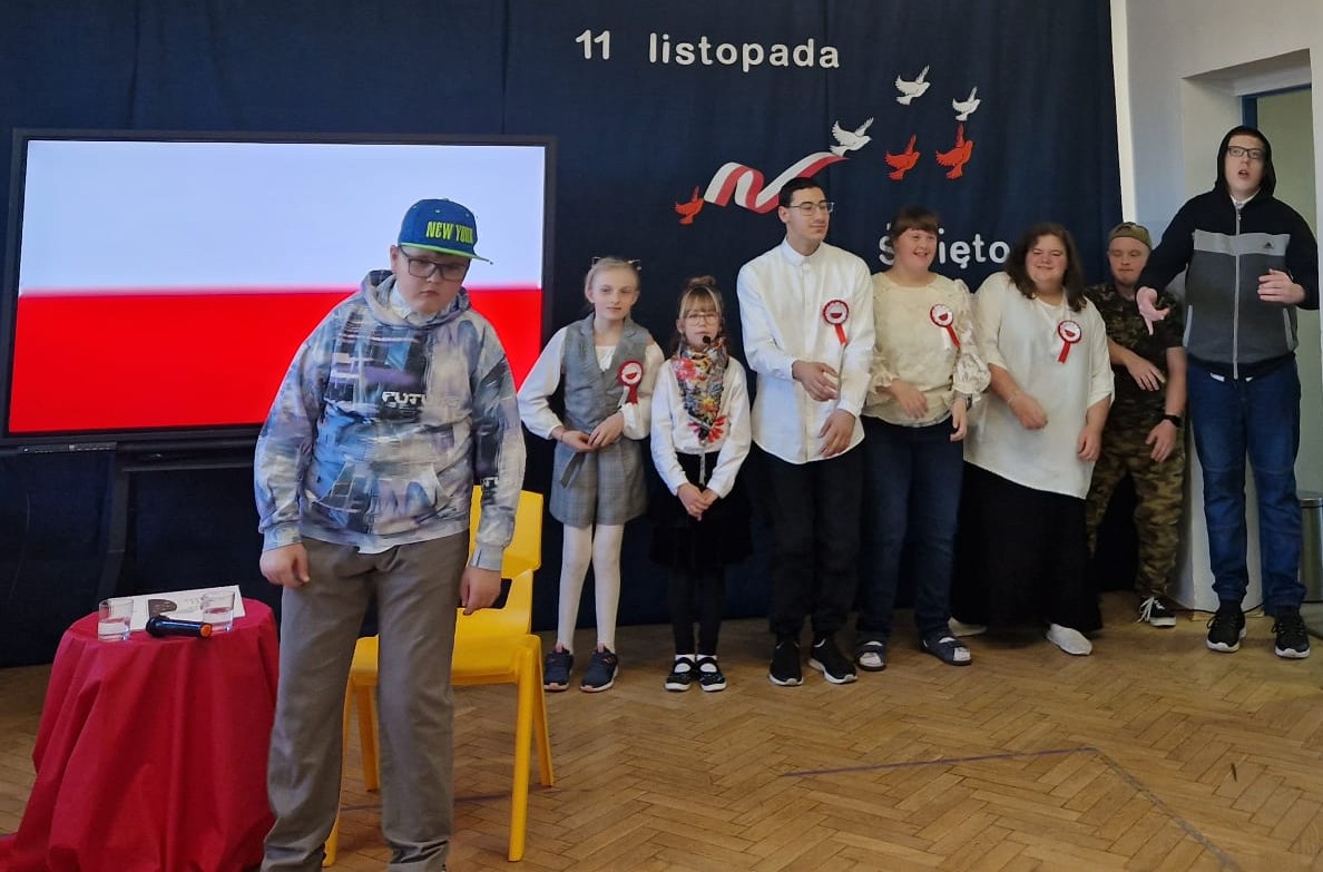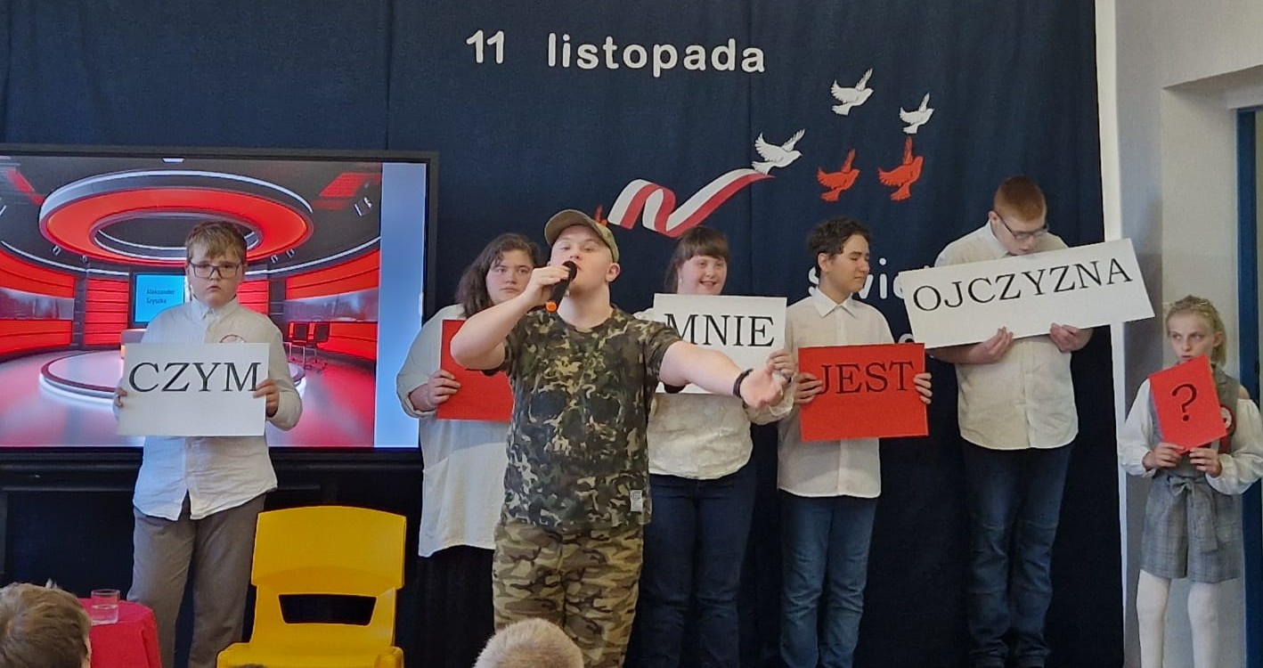 W dniu dzisiejszym w naszej szkole odbyła się uroczysta Akademia z okazji Święta Niepodległości. Była to dla nas niezwykła lekcja historii. Podczas wydarzenia uczniowie przedstawili montaż słowno-muzyczny, w którym przypomnieli najważniejsze fakty związane z walką o wolność. Przypomnieliśmy sobie, jak wiele trudnych momentów musiał przejść nasz kraj, abyśmy dzisiaj mogli cieszyć się wolną Polską. Historyczne projekcje filmowe oraz pieśni patriotyczne wprowadziły wszystkich w podniosły nastrój. Akademia miała na celu uczczenie bohaterów oraz podkreślenie wartości takich jak wolność, jedność i miłość do ojczyzny, a jej hasłem przewodnim było pytanie: "Czym dla mnie jest Ojczyzna?".