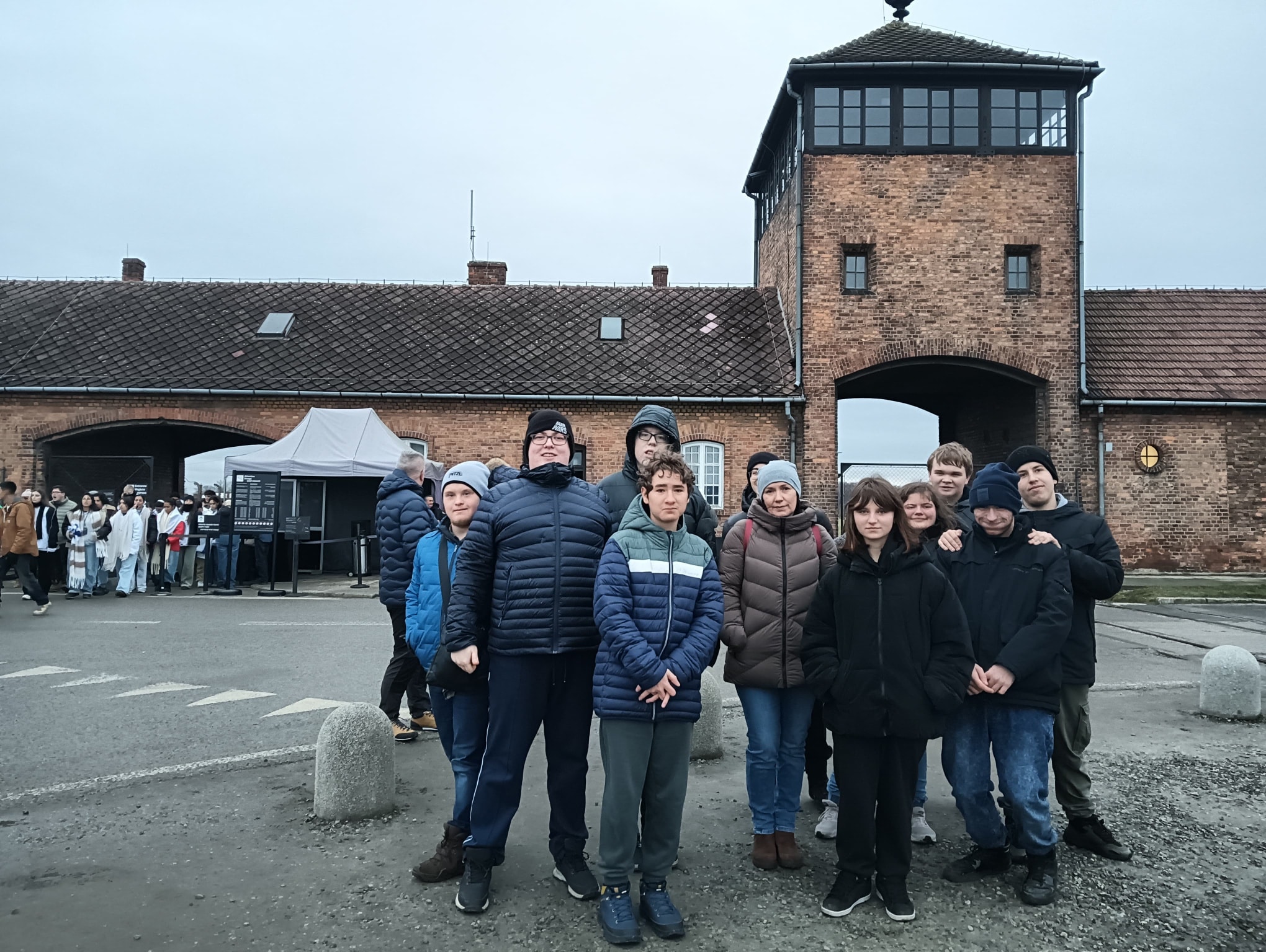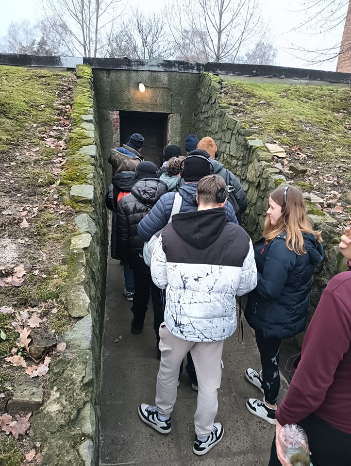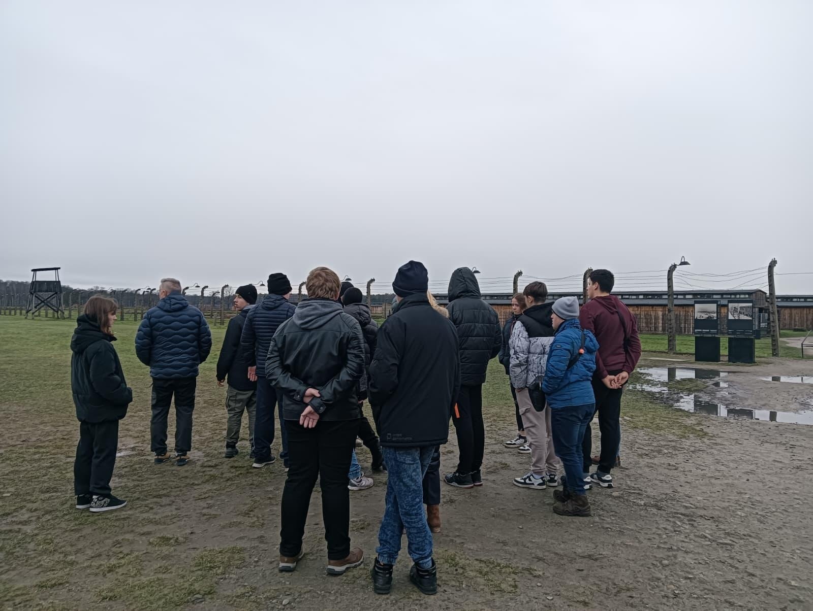 8.12.2025 r. uczniowie naszej szkoły w ramach programu "Wyjście z klasą ..." odwiedzili były niemiecki obóz koncentracyjny Auschwitz-Birkenau. Miejsce to zrobiło na nich ogromne wrażenie. Przechodząc przez bramę, zobaczyli baraki, druty kolczaste i zachowane fragmenty obozowej infrastruktury. Przewodnik opowiadał o losach więźniów, warunkach życia oraz tragicznej historii milionów ludzi. Wizyta była bardzo poruszająca i skłoniła do refleksji nad wartością życia, wolności i pamięci o ofiarach Holokaustu. To była bardzo ważna lekcja historii, o której nie można zapominać. Uczniowie mieli również okazję zwiedzić Muzeum Ratusza w Oświęcimiu, gdzie obejrzeli ekspozycje poświęcone historii miasta. Szczególnie interesujące były dawne dokumenty, fotografie oraz przedmioty związane z kulturą lokalną. Wycieczka była bardzo pouczająca, pełna refleksji i zadumy.