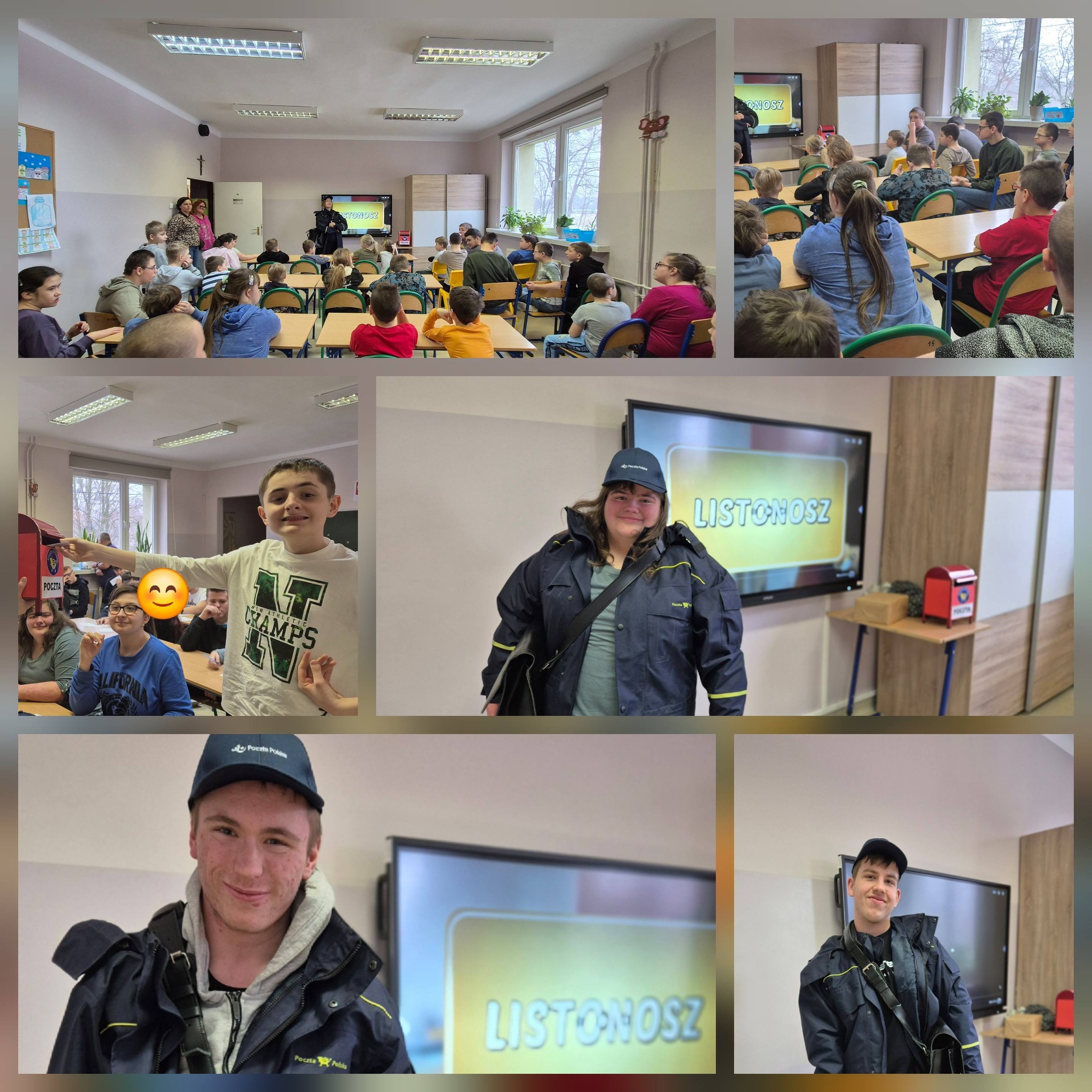 W piątek w naszej szkole odbyło się wyjątkowe spotkanie z listonosz. Dzieci miały okazję poznać specyfikę pracy listonosza, dowiedzieć się, jaką drogę pokonuje list oraz przesyłka – od nadawcy do adresata. Podczas zajęć uczniowie uczyli się również prawidłowego adresowania kopert, a zdobyta wiedza została przekazana w bardzo ciekawy i przystępny sposób. Zajęcia wzbudziły ogromne zainteresowanie i sprawiły dzieciom wiele radości. Z całego serca dziękujemy Pani Kasi za zaangażowanie i inspirujące spotkanie!