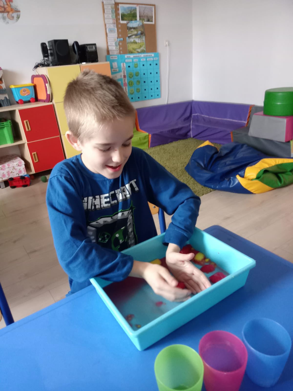 Dziś w naszym przedszkolu świętowaliśmy Światowy Dzień Wody, zamieniając sale w małe laboratoria! Dzieci odkrywały fascynujące stany skupienia, sprawdzając, jak lód zmienia się w ciecz, a gorąca woda w parę. Nie zabrakło też radosnych zabaw badawczych i eksperymentów, które nauczyły nas, jak wielkim skarbem jest każda kropla.