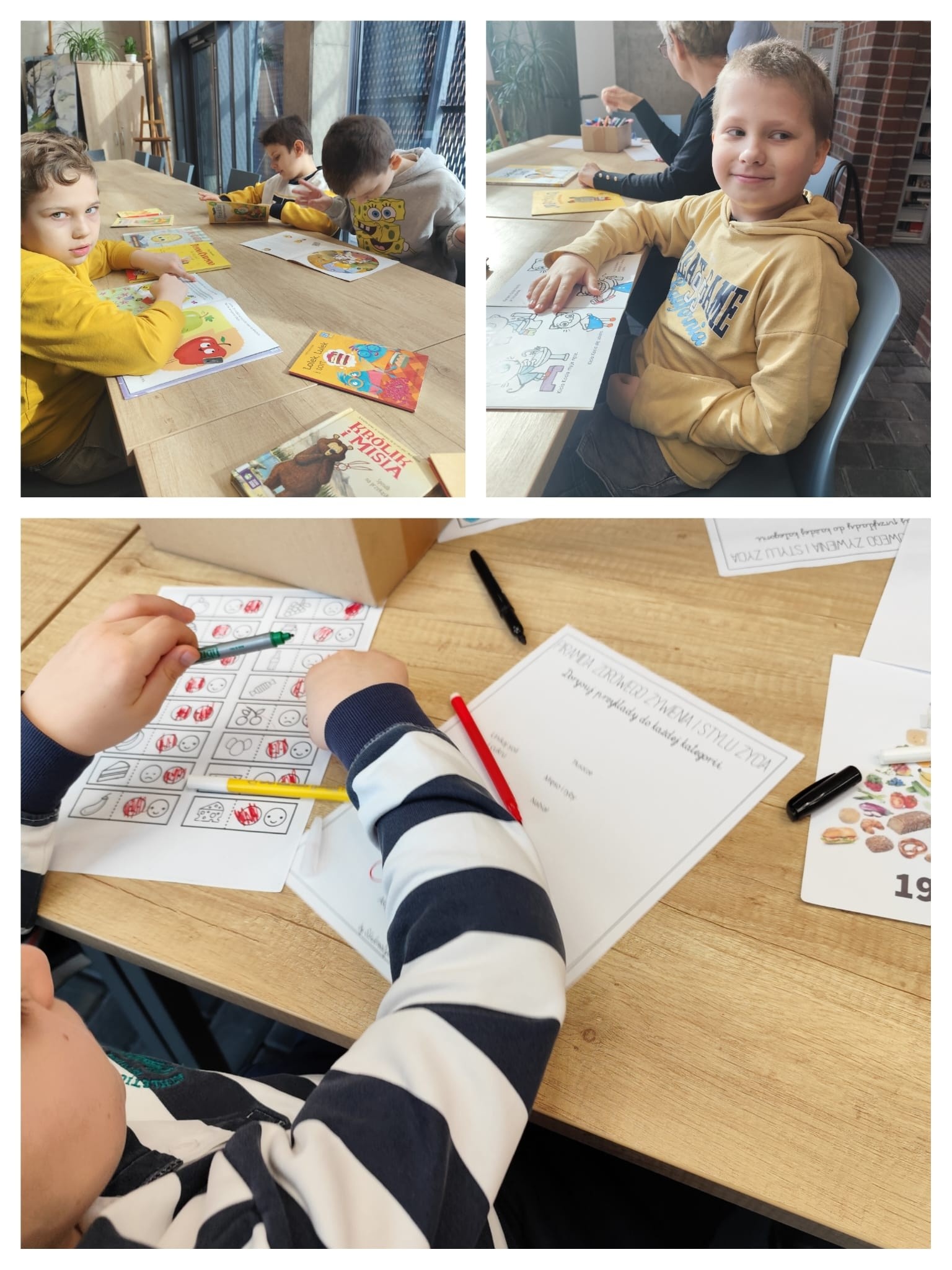 Klasa 1b i 2a miały okazję zaktualizować swoją wiedzę na temat piramidy żywieniowej. Według najnowszych badań, nowa piramida dosłownie "stoi na głowie", odwrócone są proporcje skrajnych jej końców. Rozmawialiśmy o zdrowym stylu życia i właściwych nawykach żywieniowych. Oczywiście nie zabrakło wspaniach książek tematycznych. Dziękujemy za zaproszenie.