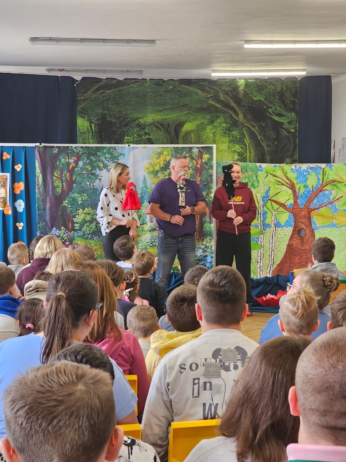 W naszej szkole odbyło się wyjątkowe przedstawienie kukiełkowe pt. „Czerwony Kapturek”, przygotowane i zaprezentowane przez nauczycieli. Spektakl wzbudził duże zainteresowanie wśród uczniów, którzy z radością śledzili losy bohaterów znanej bajki. Barwne kukiełki, ciekawa scenografia oraz humorystyczna gra nauczycieli sprawiły, że przedstawienie było pełne emocji i dobrej zabawy. Występ dostarczył dzieciom wielu radości i na długo pozostanie w ich pamięci.